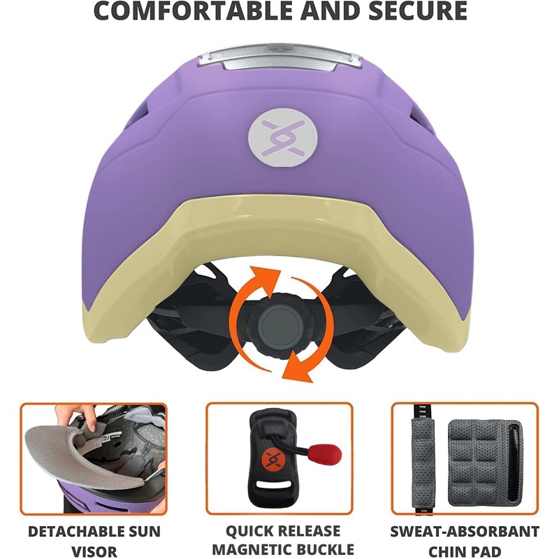 XNITO Bike Helmet with LED Lights - Urban Bicycle Helmet for Adults, Men & Women - CPSC & NTA-8776 Dual Certified - Class 3 E-Bikes, Scooters, Onewheel, Commuter, Mountain (Lavender, Large)