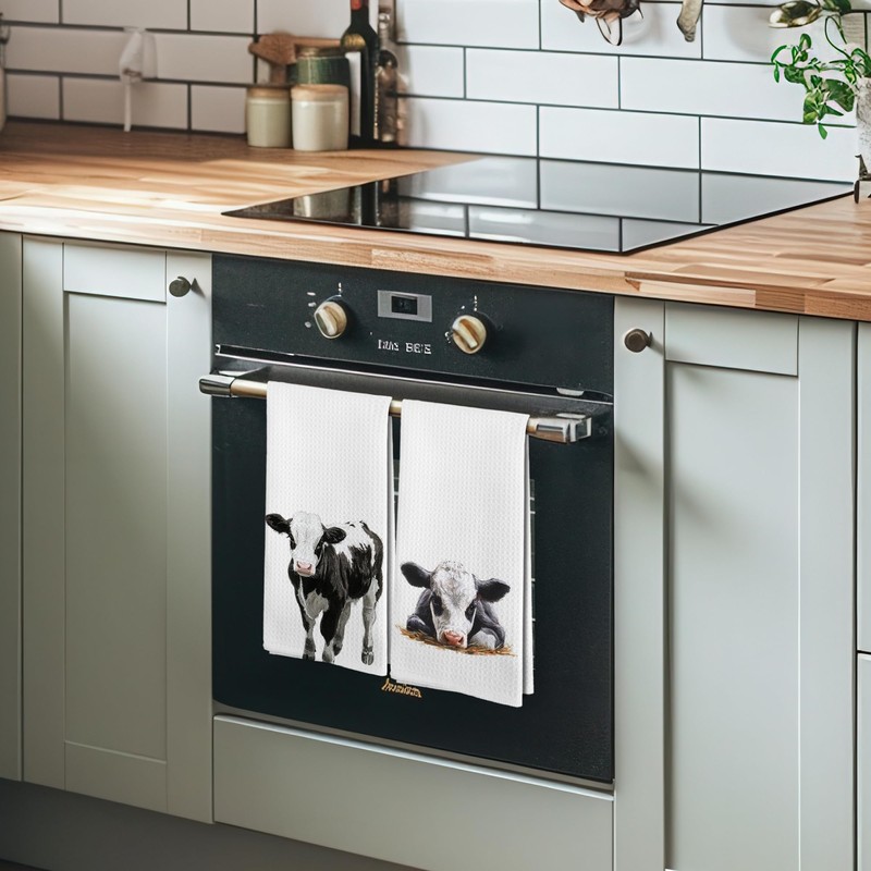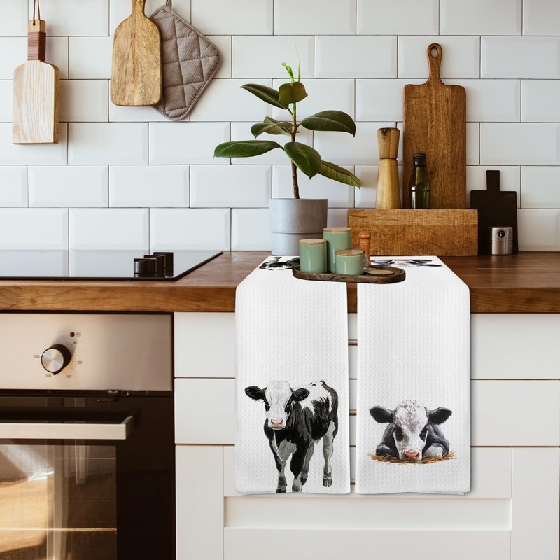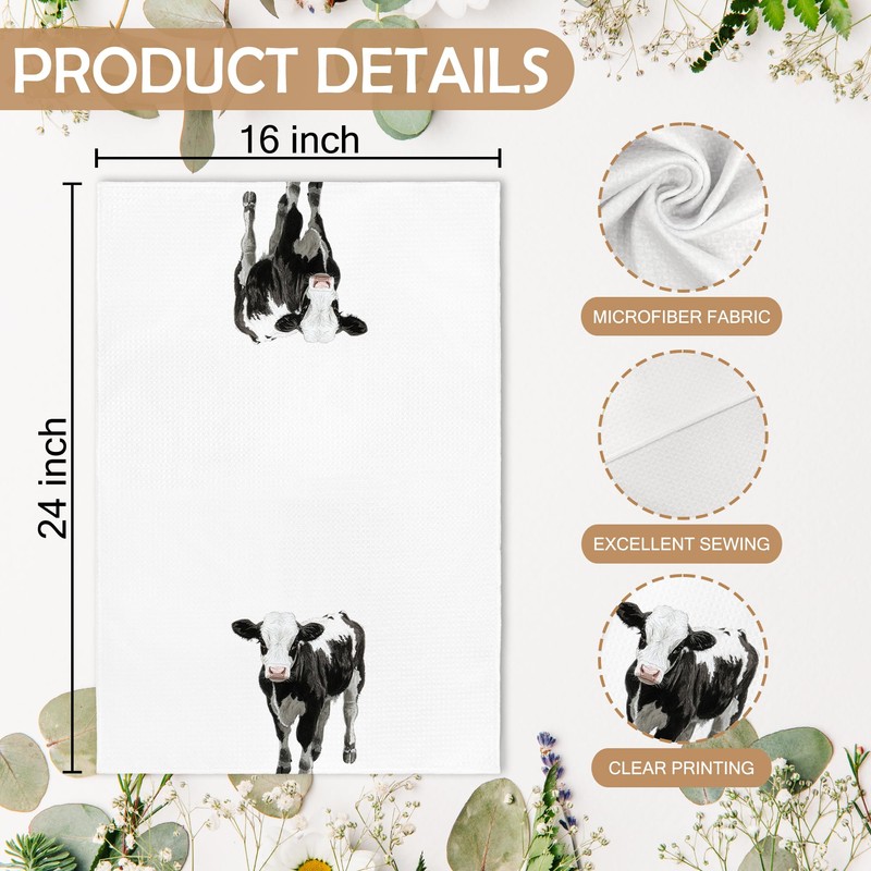 XNXLDYLH Funny Cow Kitchen Towels and Dishcloths Sets of 2, Cow Decor Stuff Gifts for Women, Woodsy Rustic Cabin Farmhouse Farm Nursery Home Decor Dish Hand Tea Towels for Bathroom Kitchen,16x24 Inch