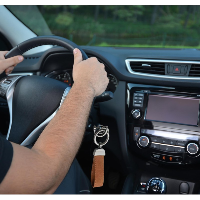 Leather Car Keychain with Heavy Duty Key Ring, 360° Rotatable D-Ring - Fits Truck, Ford, Jeep, for Men and Women
