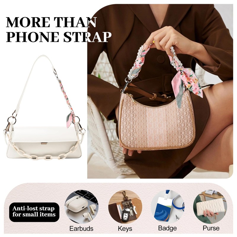 - [Exquisite Design: Vintage Scarf Meets Elegant Pearls] Crafted from soft floral scarf and glossy pearls, this scarf phone wrist strap boasts a cute, feminine look. Lightweight vibrant, floral-printed scarf feels gentle on your wrist, while pearls add timeless charm. Let your phone stand out with this unique, eye - catching combo!