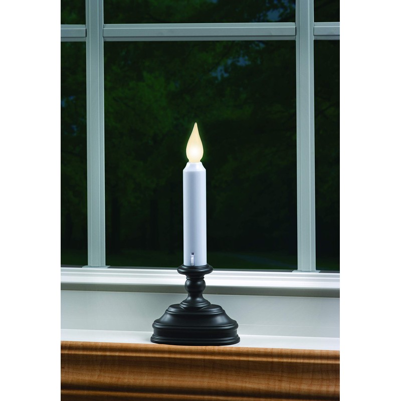 - Automatic light sensor timer turns this candle on at dusk and off at dawn