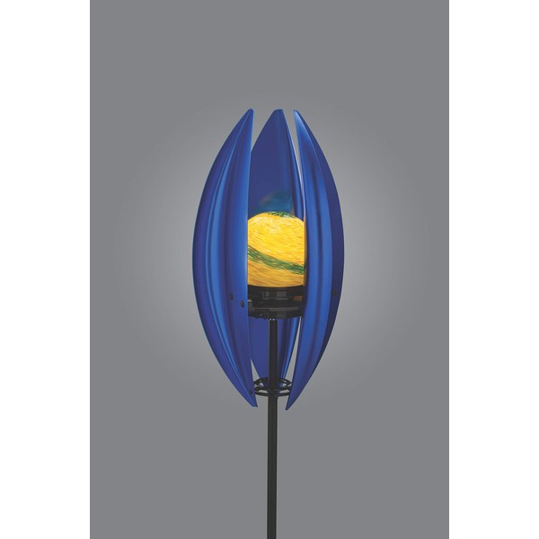Xodus Innovations WN100 Wind Powered Garden Spinner with LED Illuminated Globe and Metal Blades, Blue