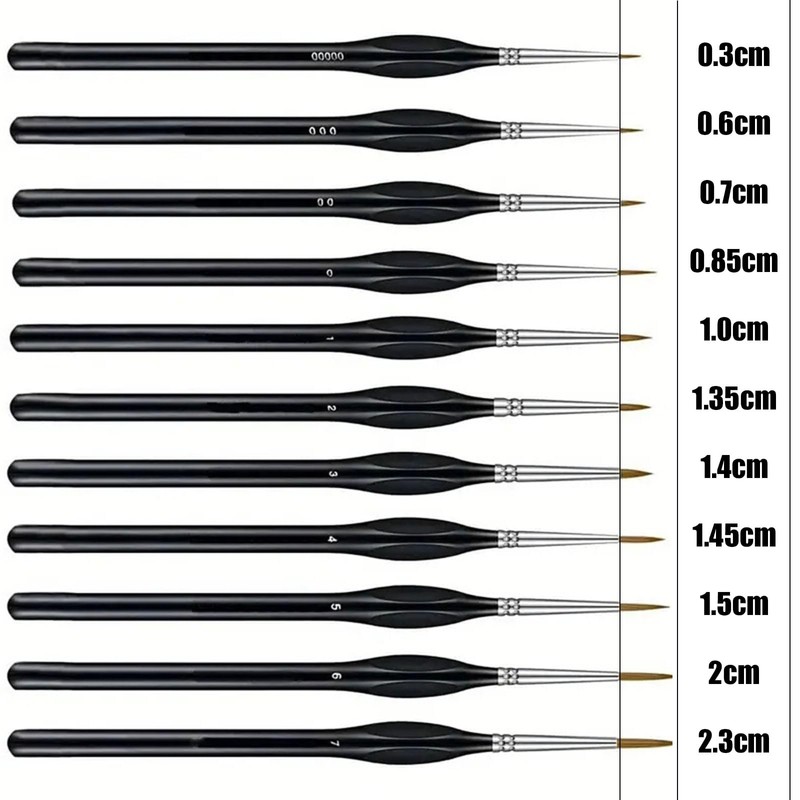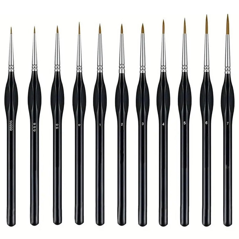 - 【Complete Detail Brush Set】This set includes 11 miniature brushes in sizes 5/0, 3/0, 2/0, 0, 1, 2, 3, 4, 5, 6, 7, offering the right tool for any intricate painting task. Ideal for miniature painting, nail art, watercolors, acrylics, and more, it’s perfect for artists of all levels.