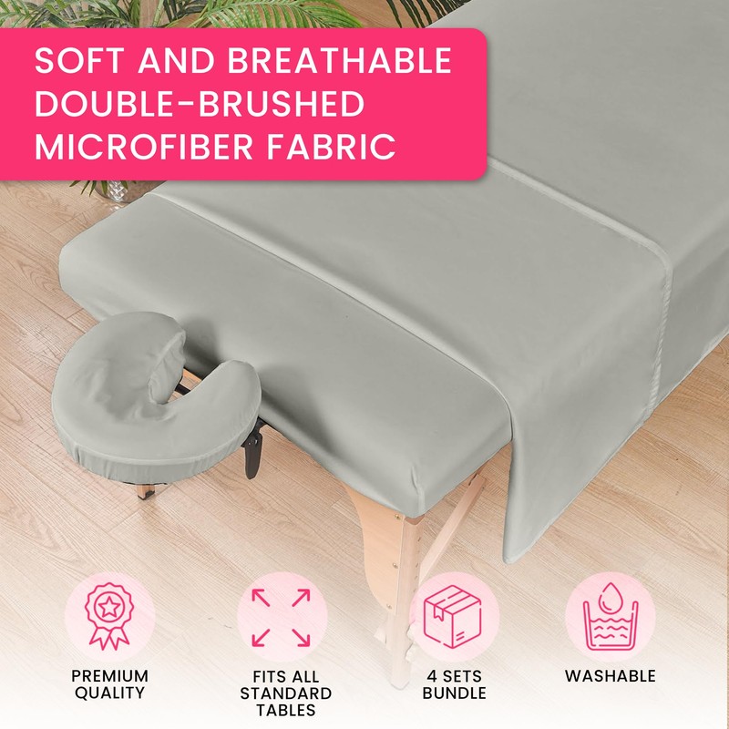 Xolloz Massage Sheets 4 Set Bundle - 120GSM Double Brushed Premium Microfiber Massage Sheets Sets - Fits All Standard Massage Tables - Stain, Oil & Wrinkle-Resistant - Cost Effective (Light Gray)