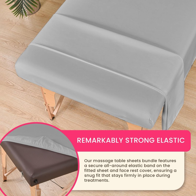 - CONVENIENT ALL-AROUND ELASTIC BAND - Both the fitted sheet and the face rest cover feature an all-around elastic band for a secure fit. This design ensures the massage bed sheets stay firmly in place during treatments, offering both comfort and functionality.
