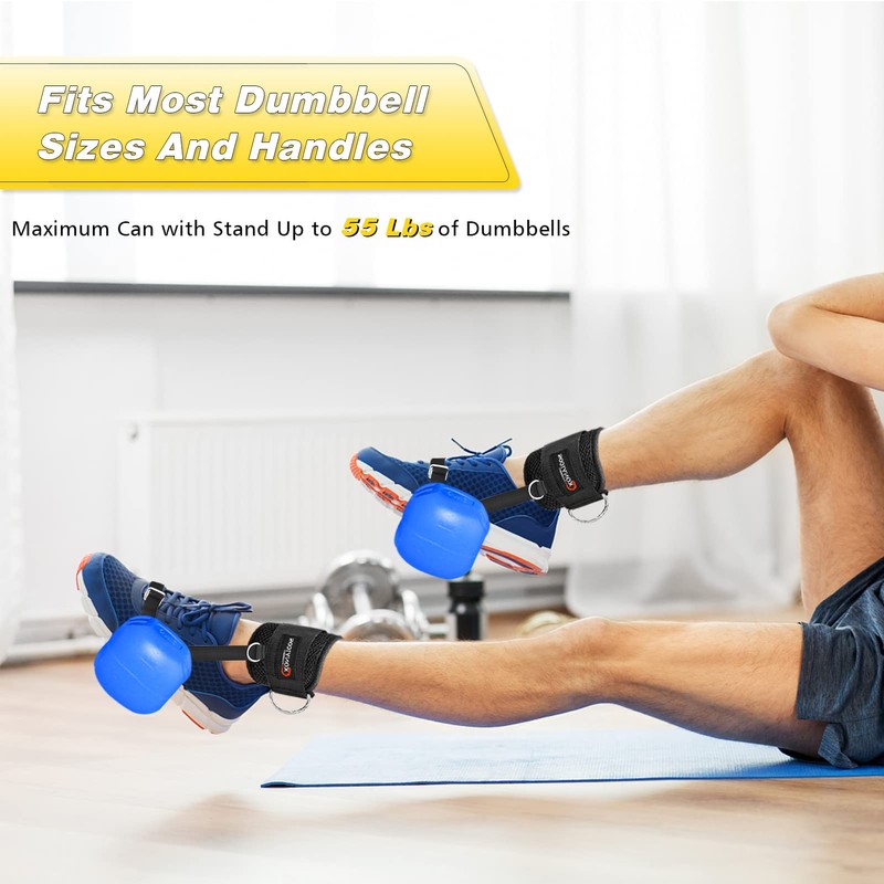 - [Work with dumbbells[The ankle straps can work with dumbbells to build your leg strength and sculpt lean legs and glutes. Whether it’s leg extensions, high knees, hamstring curls, raises, donkey kicks, hip flexor strength/power training and so on, you can feel the effect. Make your knees stronger and more powerful.