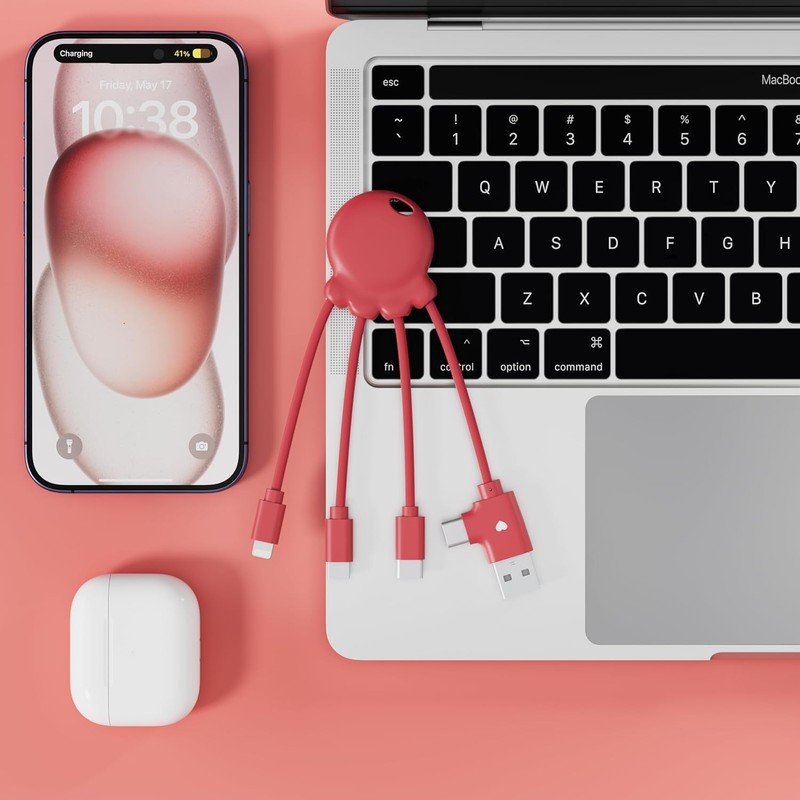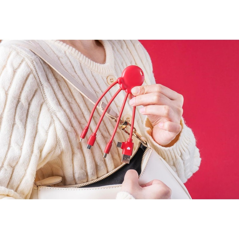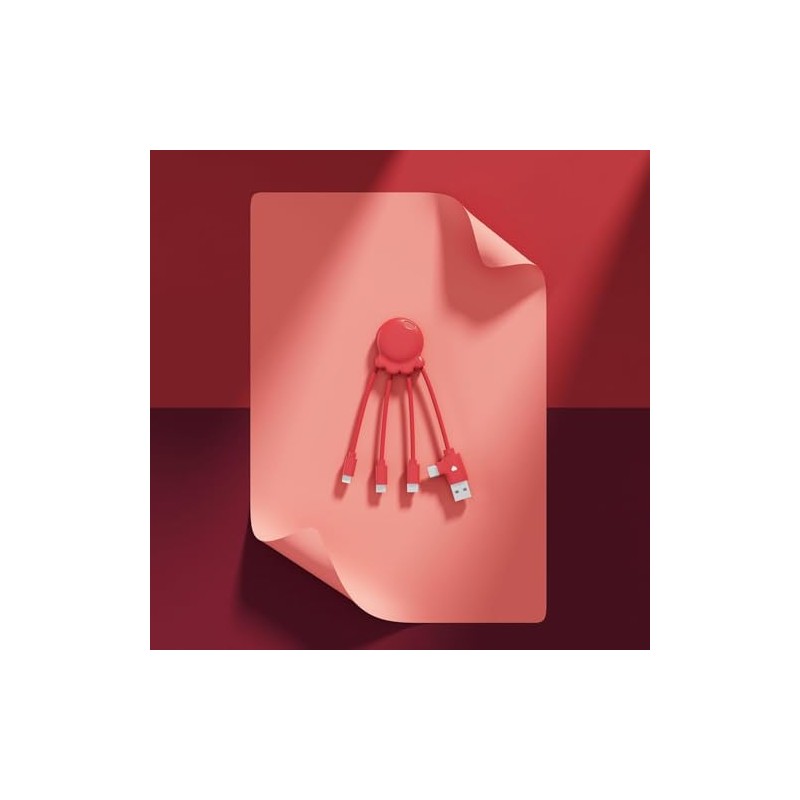 Xoopar 4-in-1 Multi USB Octopus Cable – Universal Charger with USB-C, Lightning & Micro USB – Made from Ocean Recycled Plastic – OBP RED