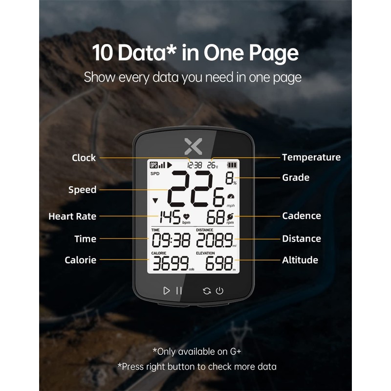 - 【Rich screen data display】G2+ cycling computer has up to 24 screen display data (displays 10 data on a single screen), which can comprehensively display key real-time data during cycling.