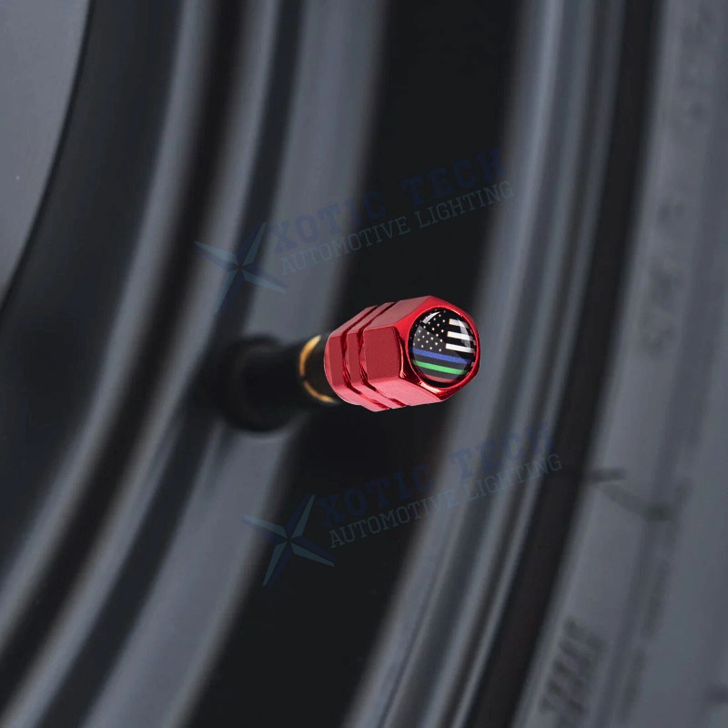 Xotic Tech 10x Reflective Blue Green Red American Flag Sticker Tire Valve Stem Caps for Car