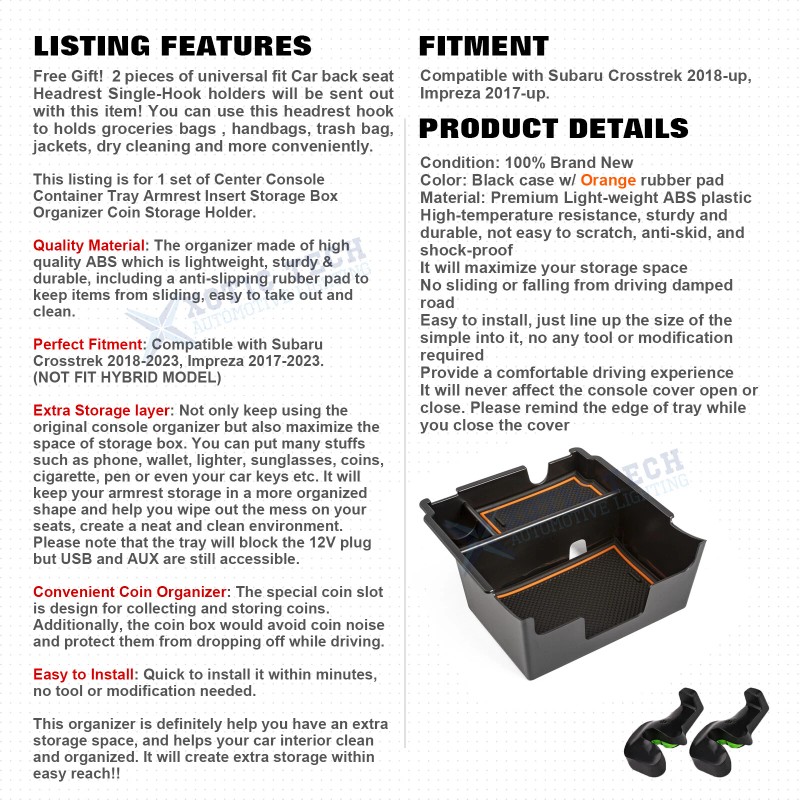 Xotic Tech Armrest Box Insert Container Secondary Storage Case For Subaru Crosstrek 2018-23