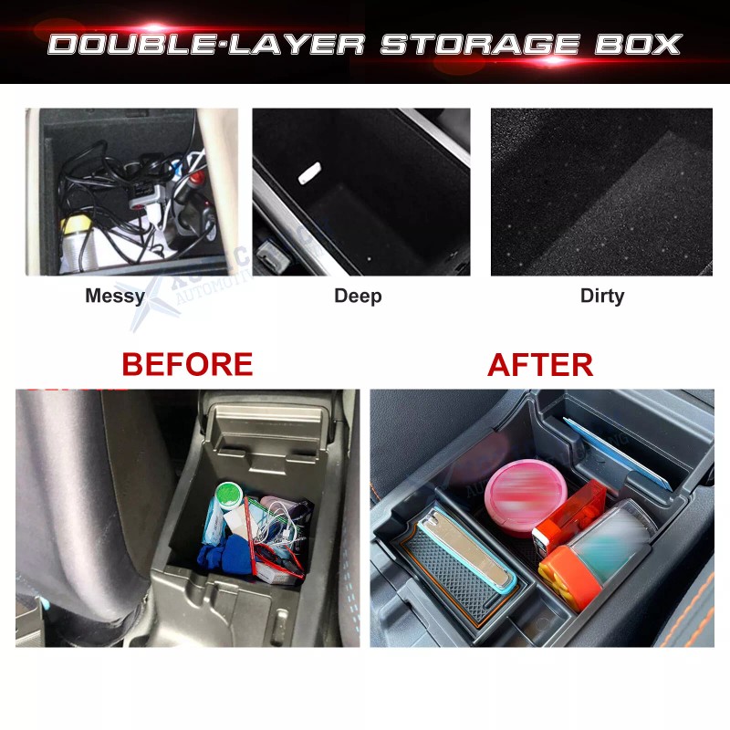 Extra Storage layer: Not only keep using the original console organizer but also maximize the space of storage box. You can put many stuffs such as phone, wallet, lighter, sunglasses, coins, cigarette, pen or even your car keys etc. It will keep your armrest storage in a more organized shape and help you wipe out the mess on your seats, create a neat and clean environment. Please note that the tray will block the 12V plug but USB and AUX are still accessible.