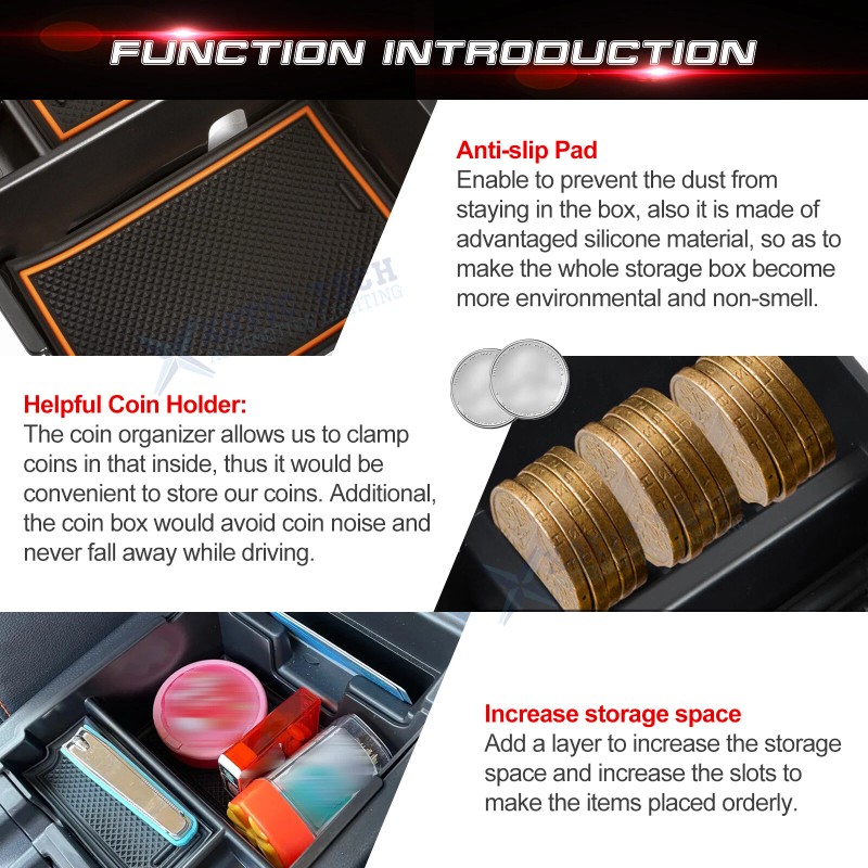 Convenient Coin Organizer: The special coin slot is design for collecting and storing coins. Additionally, the coin box would avoid coin noise and protect them from dropping off while driving.