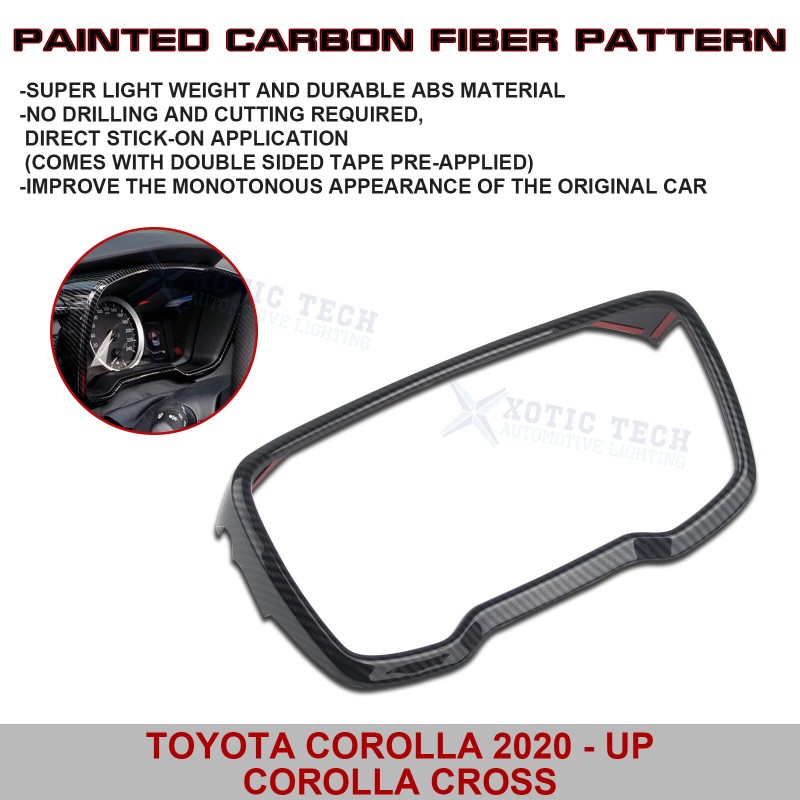 This listing is for 1 piece of Premium quality ABS with Carbon Fiber Texture Dashboard Instrument Cover Trim perfect complement for Toyota Corolla 2020-up Corolla Cross.