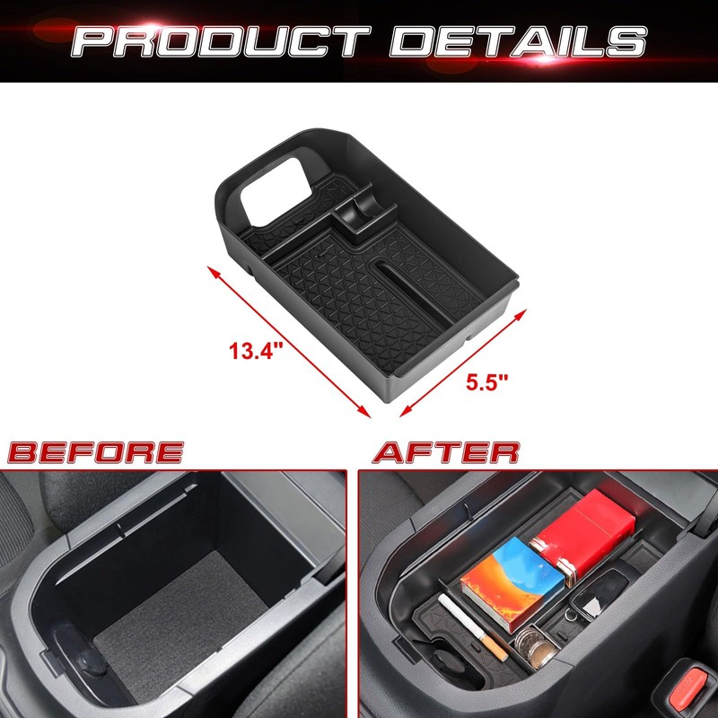 - Extra Storage layer: Not only keep using the original console organizer but also maximize the space of storage box. You can put many stuffs such as phone, wallet, lighter, sunglasses, coins, cigarette, pen or even your car keys etc. It will keep your armrest storage in a more organized shape and help you wipe out the mess on your seats, create a neat and clean environment.
