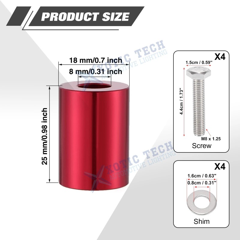 This listing is for Aluminum Alloy 8mm Car Engine Motor Hood Vent Spacer Riser Kit