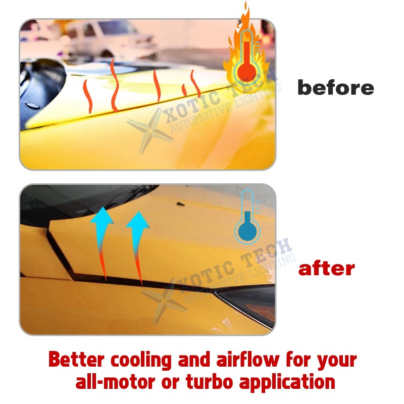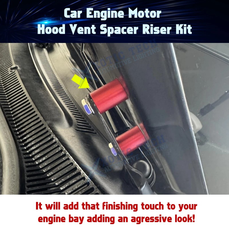 - 1 set of vehicle front hood spacer vent accessories. Stand out your engine bay to a unique look.