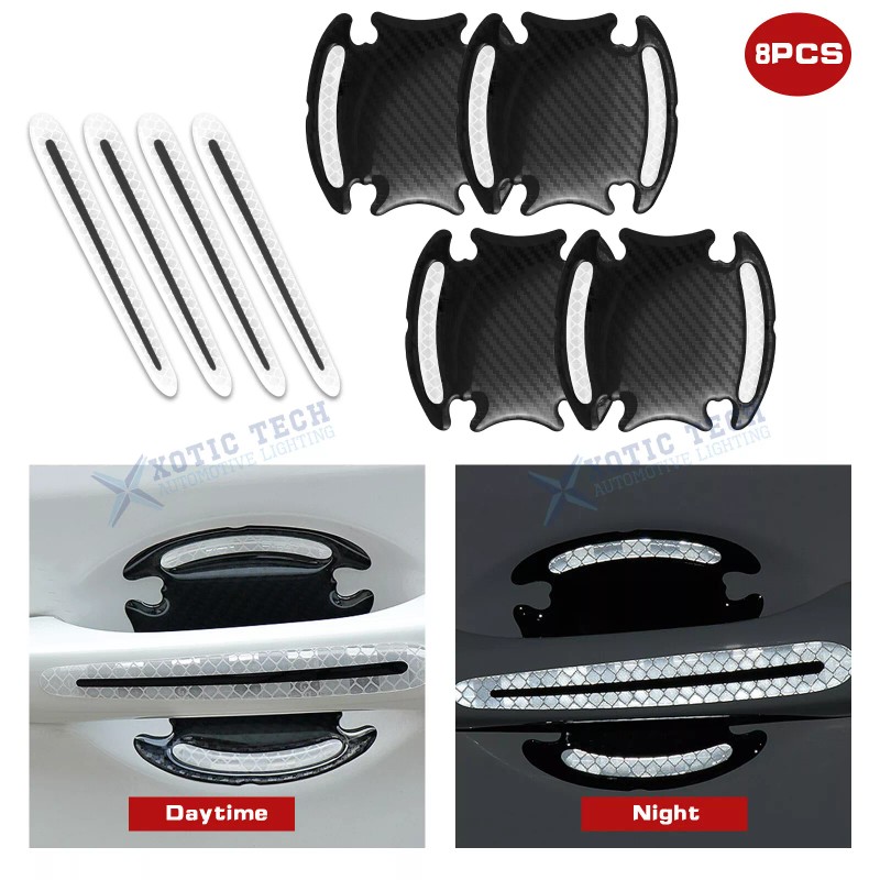Xotic Tech Reflective White w/Carbon Fiber Texture Door Handle Wrap Guard Stickers for Car