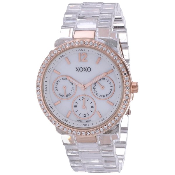 Accutime XOXO Women's XO5528 Clear Bracelet with Rhinestones on Rose Gold Case Watch