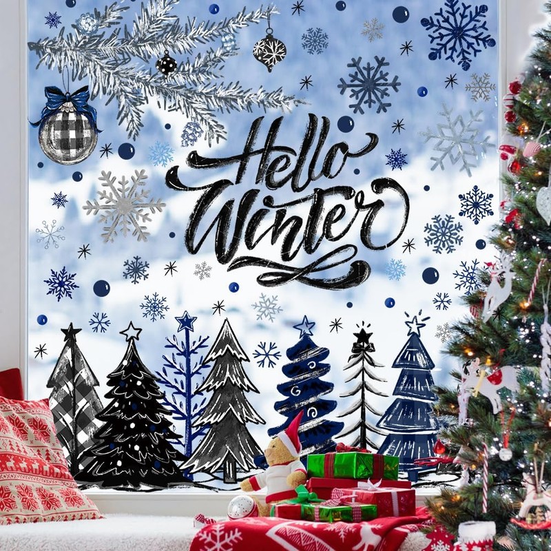 - 【Package Includes】You will get 6 blue Christmas tree clings, a total of 168 pieces of decals of different sizes. The largest size is 27.2*19.2cm, the smallest size is 0.7*0.7cm.These cute window stickers are loved by children, it can create a warm and joyful Christmas atmosphere. Meet your Christmas holiday decoration needs, add color to your windows.
