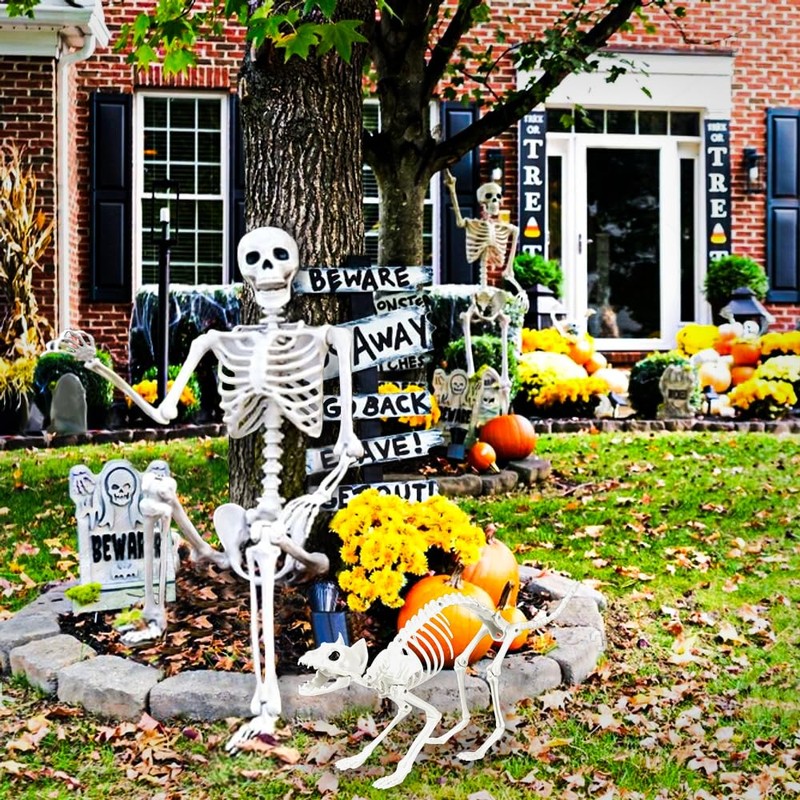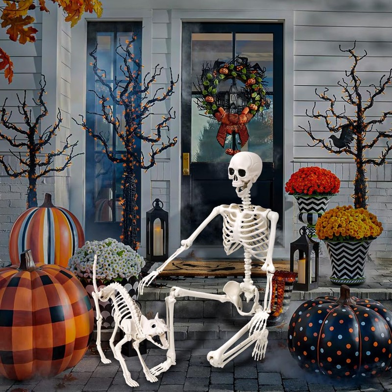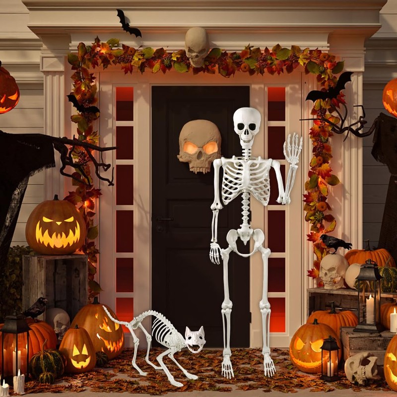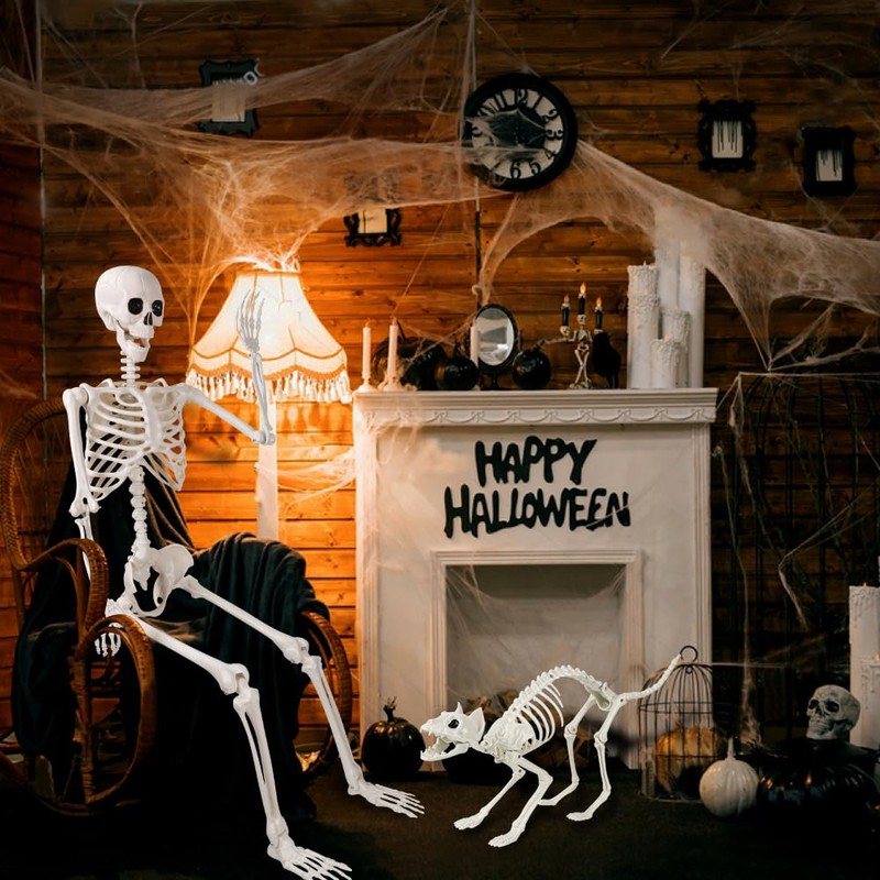- Value Packs: This Halloween Skeleton Pack includes a 5.4 ft/165 cm life-size human full-body skeleton and a cat skeleton with realistic bones, which is so lifelike that it is sure to be the perfect prop for your Halloween decorations.