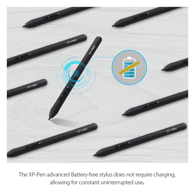 - The XP-Pen advanced Battery-free stylus does not require charging, allowing for constant uninterrupted Draw & PLAY. It is also designed to have a big impact on the user's creativity and not on our environment. It is the perfect replacement for the traditional mouse.
