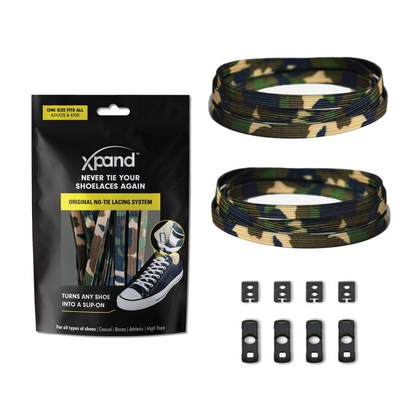 The Xpand lace system includes two 52" Xpand laces that extend over 100", four lace anchors to secure your shoelaces, and four lace end clips to finish your laces when installed in "display mode". Our patented Lace Anchor technology keeps laces in place while you are adjustable. Once you put on your desired tension, you can put your shoes on and take them off without adjusting them every day. Our no tie shoelaces are great for runners, triathlons, hikers, bikers, kids, seniors, handy caps, swelling feet, lack of fine motor skills, or anyone with problems with standard laces Our system will get the whole family out of the door in 3 seconds.