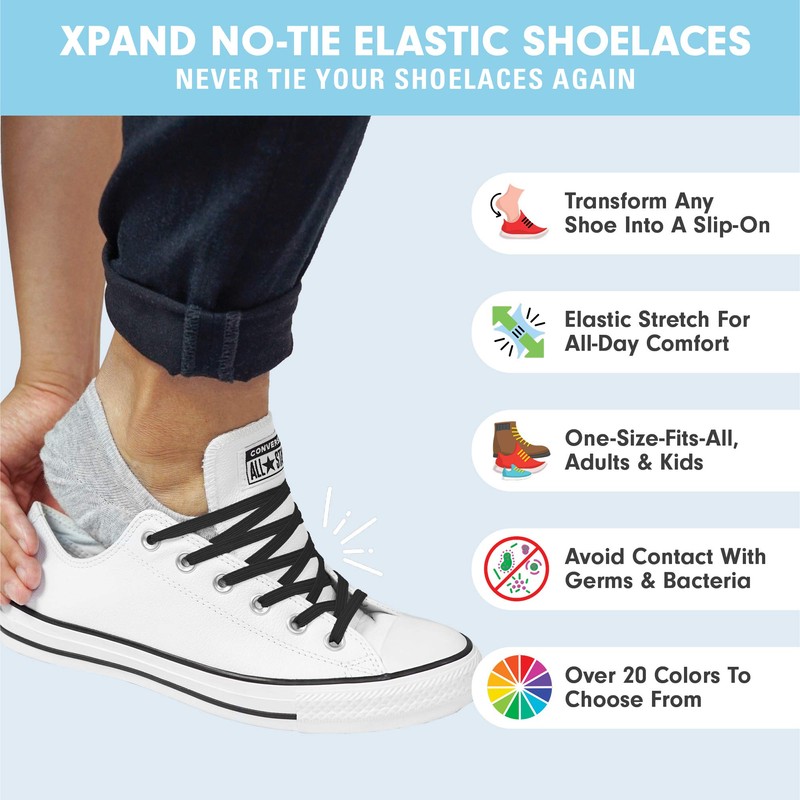 - SIMPLE AND COMFORTABLE: Simply install your Xpand elastic shoe Laces with the desired tension and slip-on / slip-off with no hassles day after day. Never have to worry about un-tied laces again!