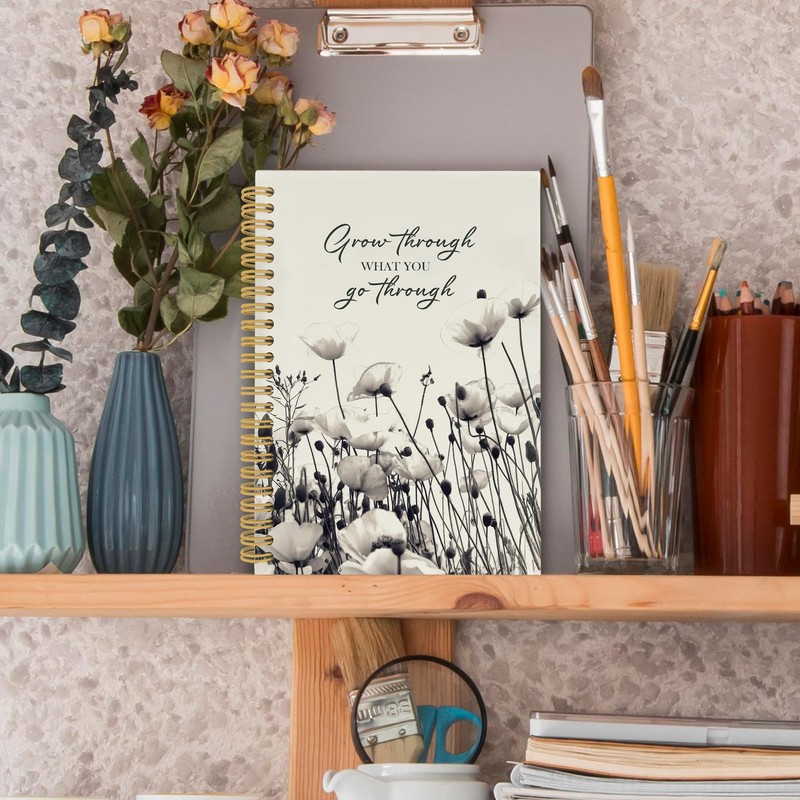 XPH Inspirational Floral Spiral Notebook, Motivational Floral Journaling Notebooks for Note Taking, Rustic Wildflower Hardcover Journals for Women 160 Pages 5.5x8.3 Inch, Mental Health Gifts for Women