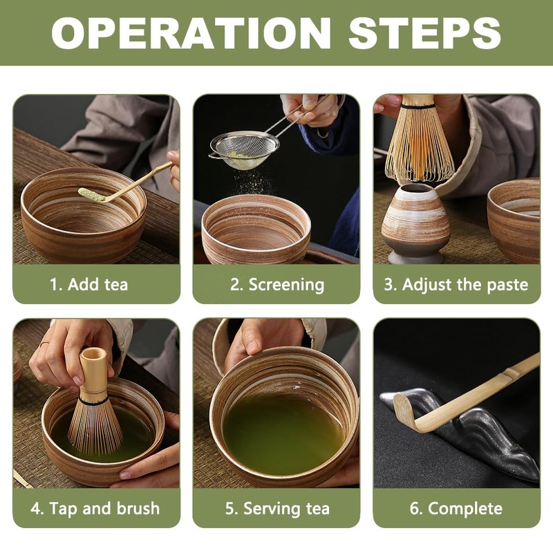 - Easy to Use: The matcha spoon makes it easier to measure the tea powder precisely. The matcha whisk features a comfortable handle for effortless blending of matcha and quick frothing. The matcha bowl is made of high-quality ceramic with a warm and delicate texture, highlighting the optimal softness of matcha