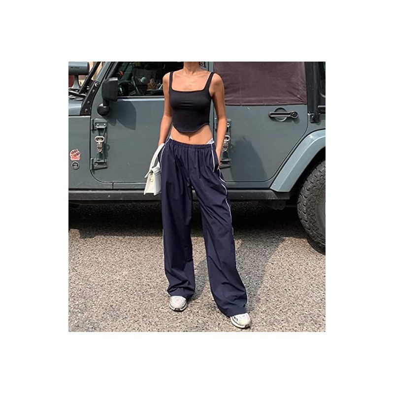 XPONNI Track Women Baggy Y2k Parachute Pants for Women Y2K Clothing(Navy,S,Small)