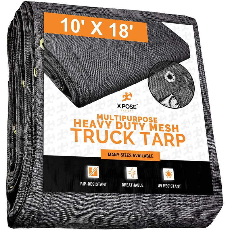 Xpose Safety Heavy Duty Mesh Tarp – 10’ x 18’ Multipurpose Black Protective Cover with Air Flow - Use for Tie Downs, Shade, Fences, Canopies, Dump Trucks – Tear Resistant
