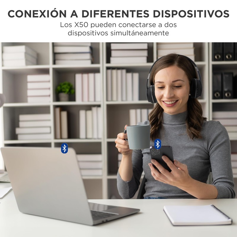 - CONEXIÓN MÚLTIPLE RÁPIDA Y SIN COMPLICACIONES: Los X50 permiten conexión a dos dispositivos para máxima comodidad. Para emparejarlos por 1ra vez: busca los X50 en tu dispositivo inteligente y listo! Después cuando enciendas los X50 conectarán instantáneamente a tu dispositivo.