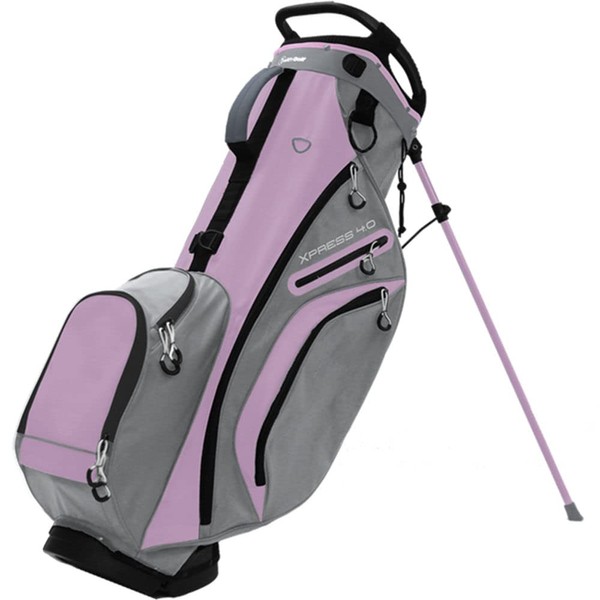 Xpress 4.0 stand bag - a perfect combination of lightweight and durability with a great look. The newly designed 6-way stand bag uses a lightweight, but very durable fabric. The top and the stand system are all reinforced to be strong and sturdy. A comfortable hip pad and a thick padded shoulder strap add even more comfort. With 6 pockets and an insulated water bottle sleeve, this bag has storage space for all your golfing