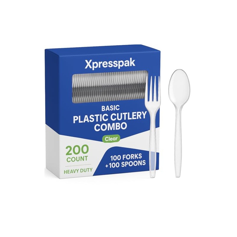 XpressPak 200-Piece Clear Plastic Cutlery Set – 100 Forks & 100 Spoons | Heavy Duty Disposable Utensils for Parties, Catering, Events & Everyday Use | BPA-Free, Durable & Elegant