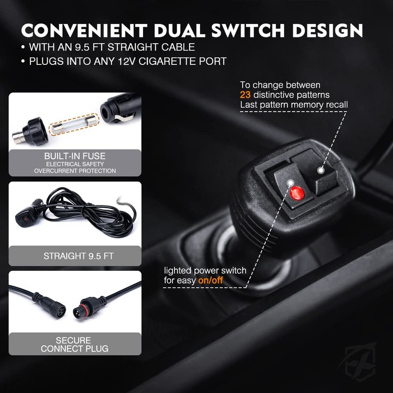 - EMERGENCY RAPID RESPONSE: Xprite visor strobe light is accompanied by a straightforward 12V cigarette lighter adapter, facilitating swift activation. Boasting an impressive array of 23 strobe modes, it proves invaluable for exigent calls, navigating harsh weather, and beyond. It includes the convenience of recalling the last pattern used.