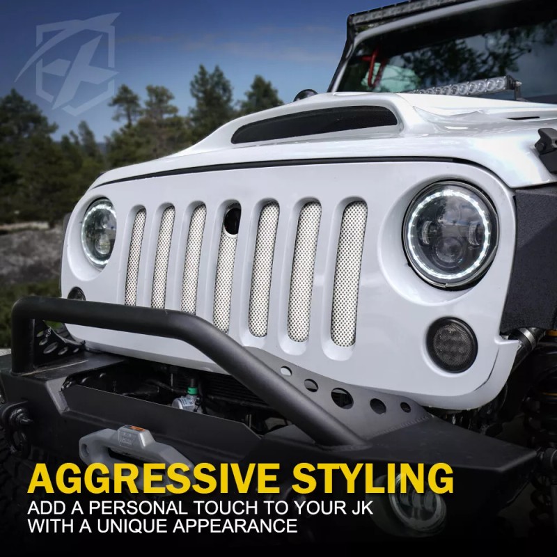 Xprite For 2007-2018 Jeep Wrangler JK Aluminum White Mesh Grille Insert Hood ...