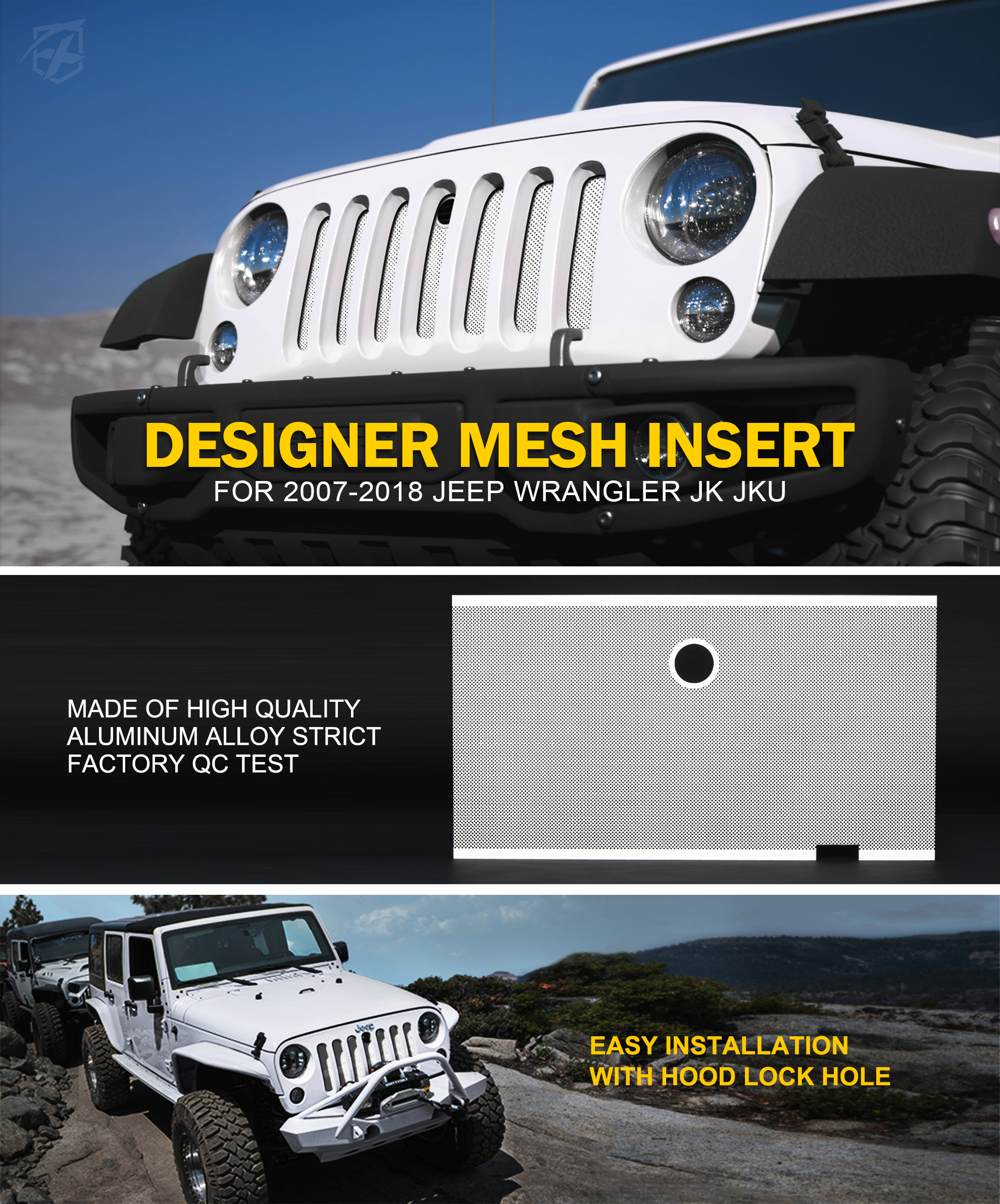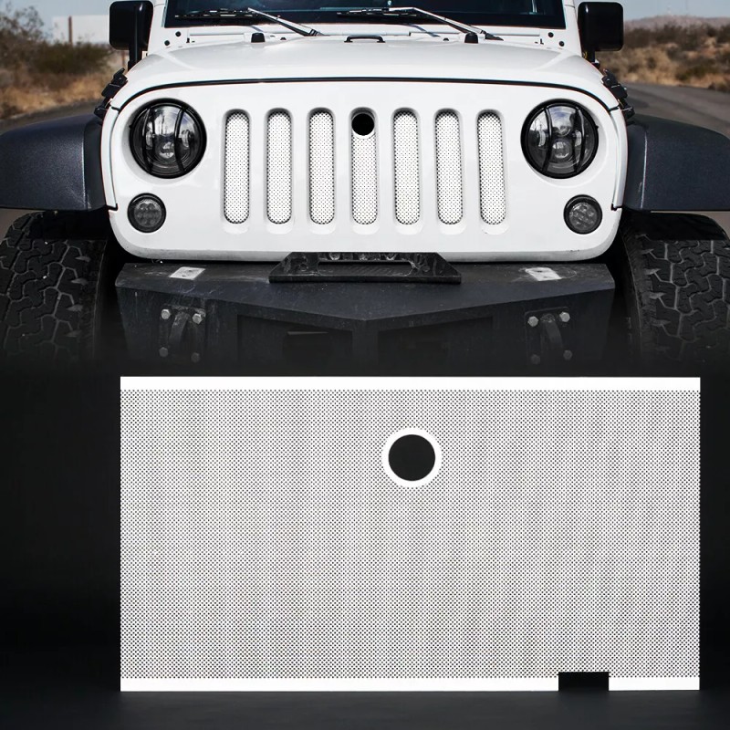 For 2007-2018 Jeep Wrangler JK Aluminum White Mesh Grille Insert Hood Lock Hole