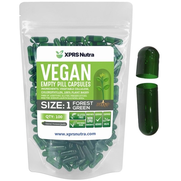 XPRS Nutra Size 1 Empty Capsules - 100 Count Empty Vegan Capsules - Vegetarian Pills - DIY Vegetable Capsule Filling- Veggie Pill Caps for Do-It-Yourself Supplements (Forest Green)