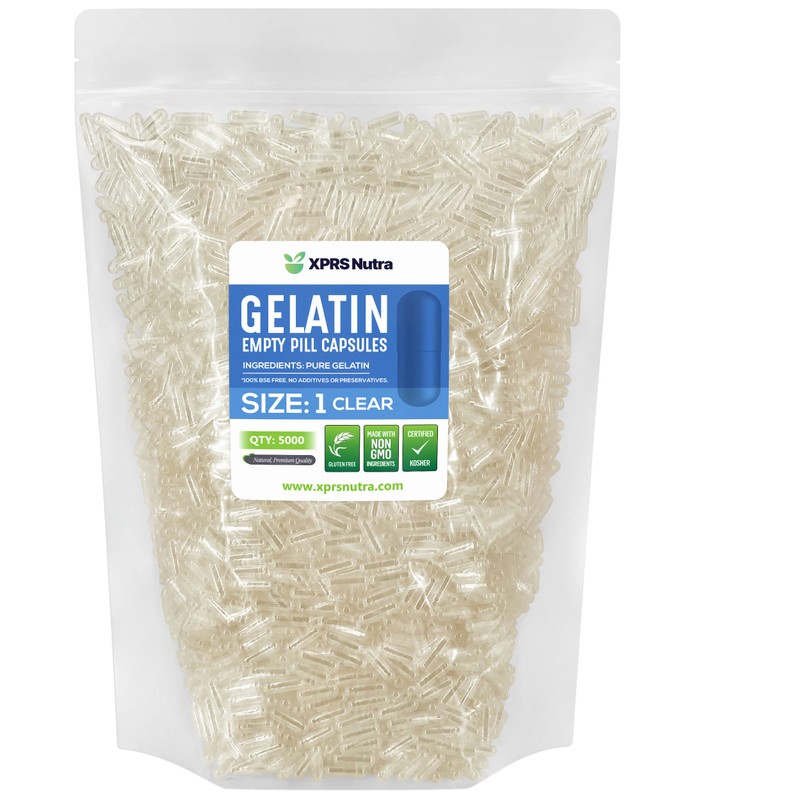 XPRS Nutra Size 1 Empty Capsules - 5000 Count Clear Empty Gelatin Capsules - Empty Pill Capsules - DIY Capsule Filling - Pure Bovine Pill Capsules Empty Gel Caps