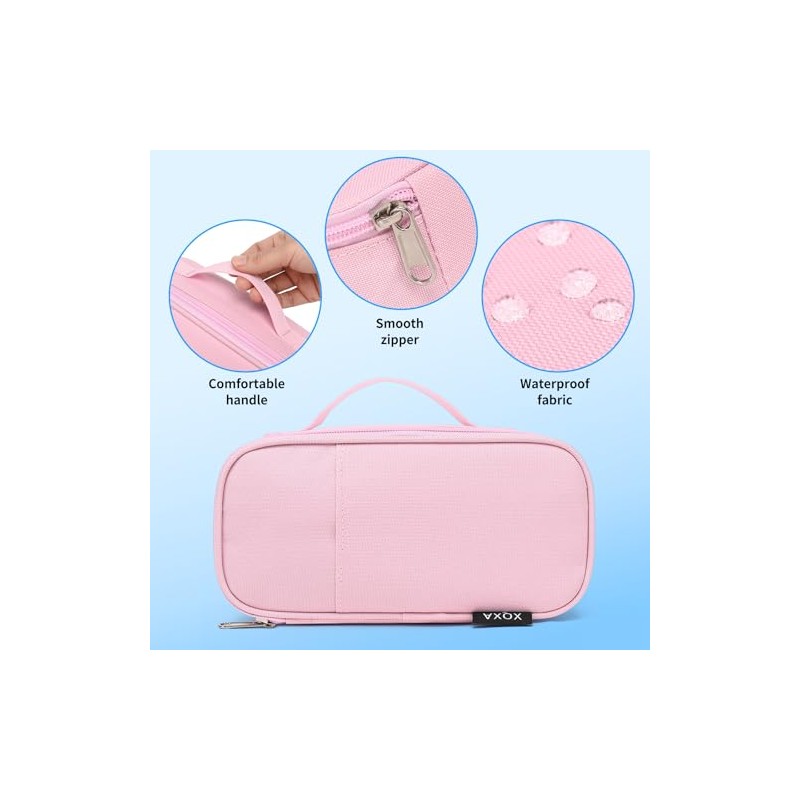 XQXA Large Capacity Pencil Case Multi-Slot Pencil Pouch Durable Pencil Box Portable Makeup Bag with Handle for Office (Pink)