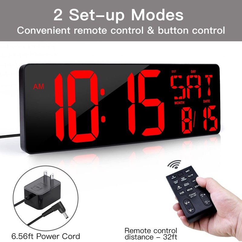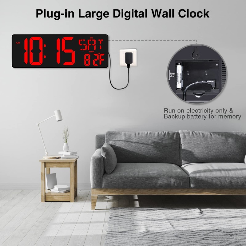 - 16.5" EXTRA LARGE LED DISPLAY ---- 4.84 inch High contrast clear jumbo digits make it much easier to read from anywhere in the room. This large digital wall clock can show the time, date, month, day and temperature, bring you clear and comfortable visual sense. Great choice for home decor, office, classroom, gym, hospital, shop, garage, seniors & the visually impaired.