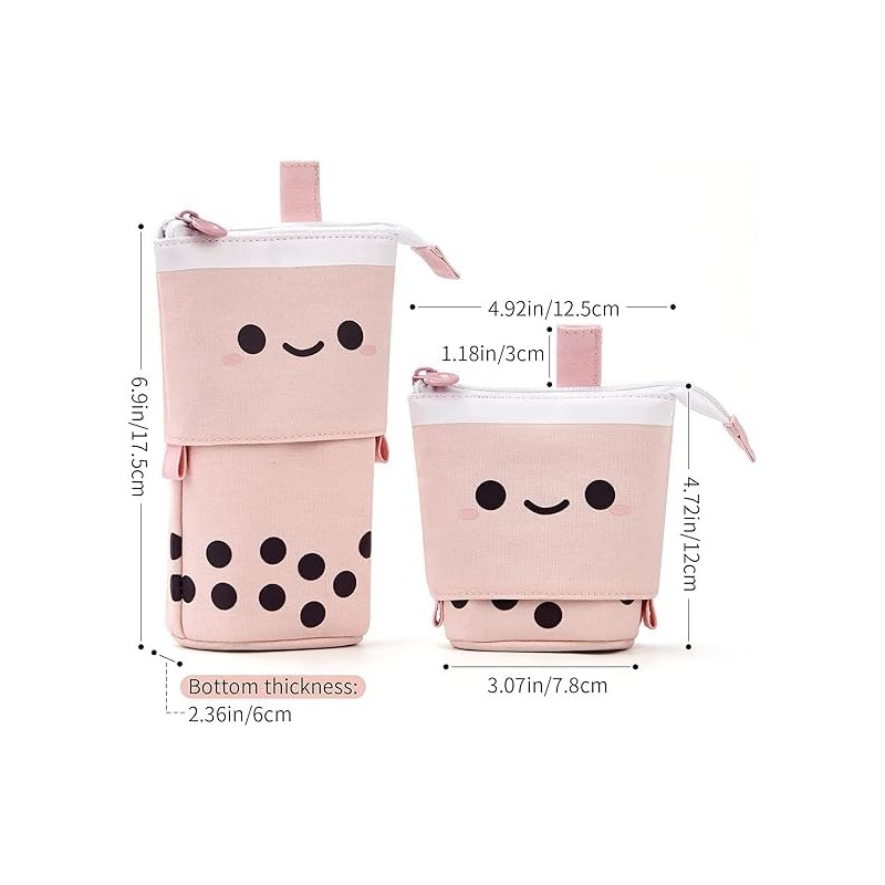 Xrten Upright Pencil Case,2 in 1 Telescopic Pencil Pouch Stand Up Pen Holder for Teenage Students,Vertical Pencil Pouch Pen Organizer (Peach Milk Tea)