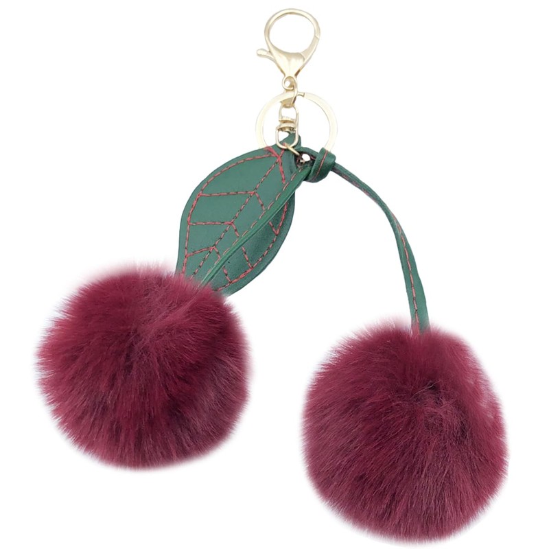 Xsclpomddy Cute Cherry Keyring Bag Charms Handbags Bag Pendant Cherry Pom Pom Keychain Accessories,wine