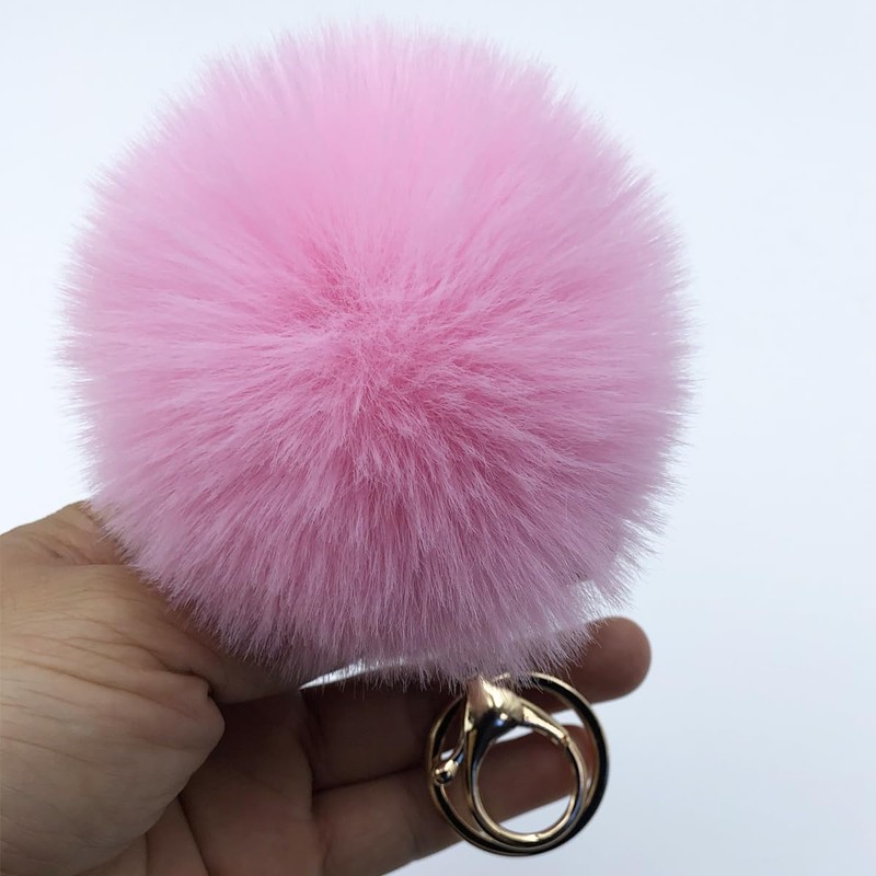 Xsclpomddy Pom Pom Keychain Artificial Soft Rabbit Hair Bag Pendant Ball Keyring for Handbag Car Pendant Decoration, pink