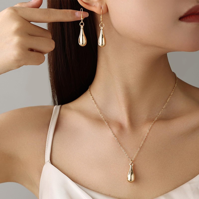 XSDSLS Teardrop Pendant Jewellery Sets for Women Silver Gold Teardrop Necklace Waterdrop Dangle Studs Earrings Waterdrop Earrings Drop Pendant Necklace Valentine's Day Jewellery for Women (Gold)