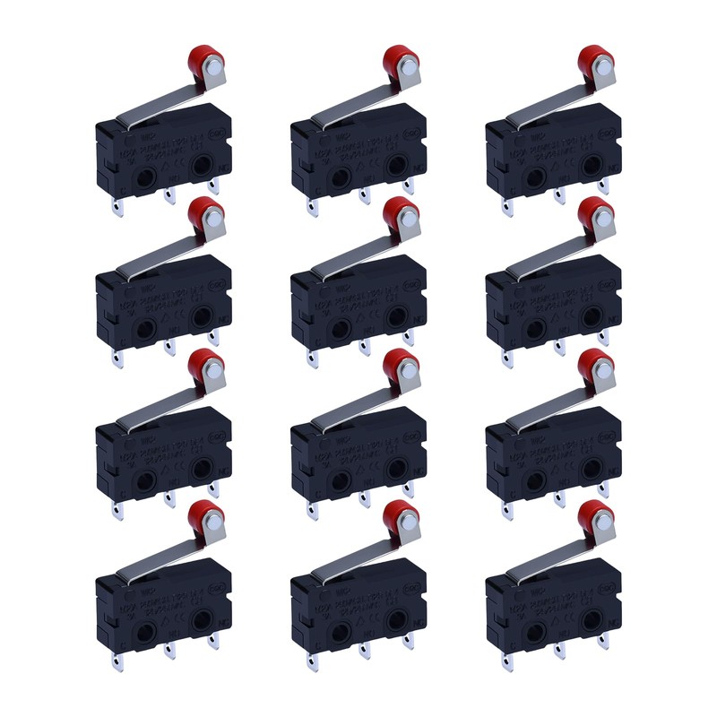 XSHBGF 12Pcs Micro Limit Switch 125 250V AC 5A SPDT 1NO 1NC Micro Switch Normally Open Close Momentary Limit Switch with Hinge Lever (12*Roller Lever Arm)
