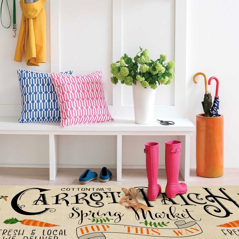 Xsinufn Easter Kitchen Rugs and Mats Set of 2,Funny Spring Bunny Easter Carrot Kitchen Mat,Rabbit Non Slip Washable Kitchen Floor Sink Mats Decorations for Home Kitchen 18"x48"+18"x30"