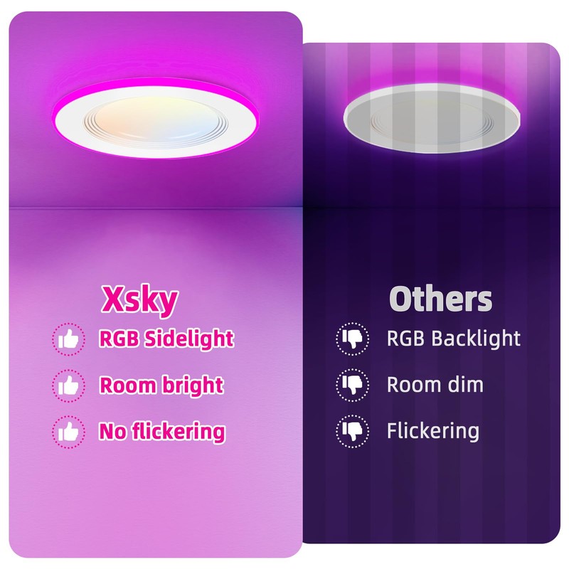 - Alexa Seamless Control: Xsky smart recessed light offer seamless integration with Alexa, allowing you to control them directly without the need for a gateway or Hue bridge. You can easily connect your smart lights to Alexa through a simple pairing process, and start enjoying the convenience of app control and voice control right away.