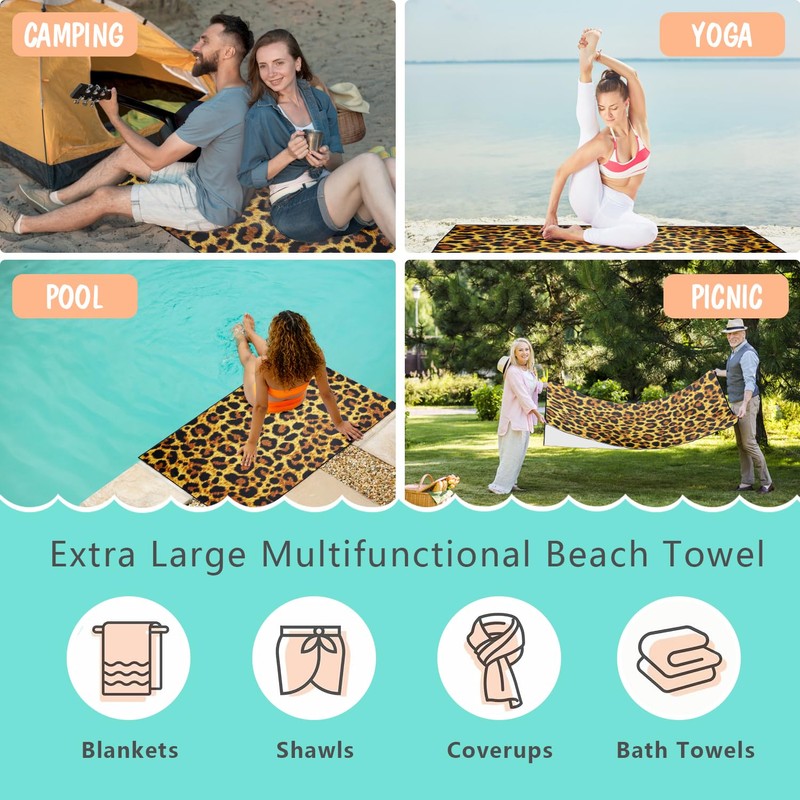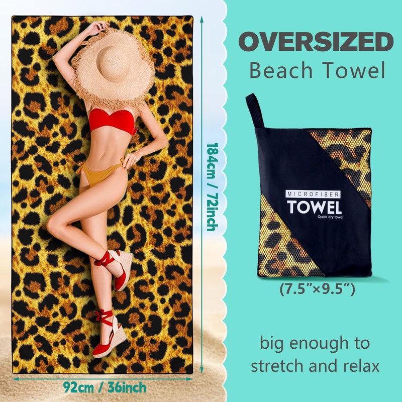 XSMEI Leopard Print Beach Towel Oversized 36" x 72", Thin Lightweight Sand Free Quick Dry Microfiber Towel for Swimming Pool Cruise Camping Travel