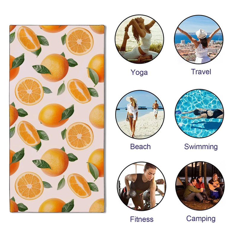 XSMEI Oranges Pattern Beach Towel Extra Large 36" x 72", Thin Lightweight Microfiber Towels with Fruit Design, Sand Free and Quick Dry, Compact Bag